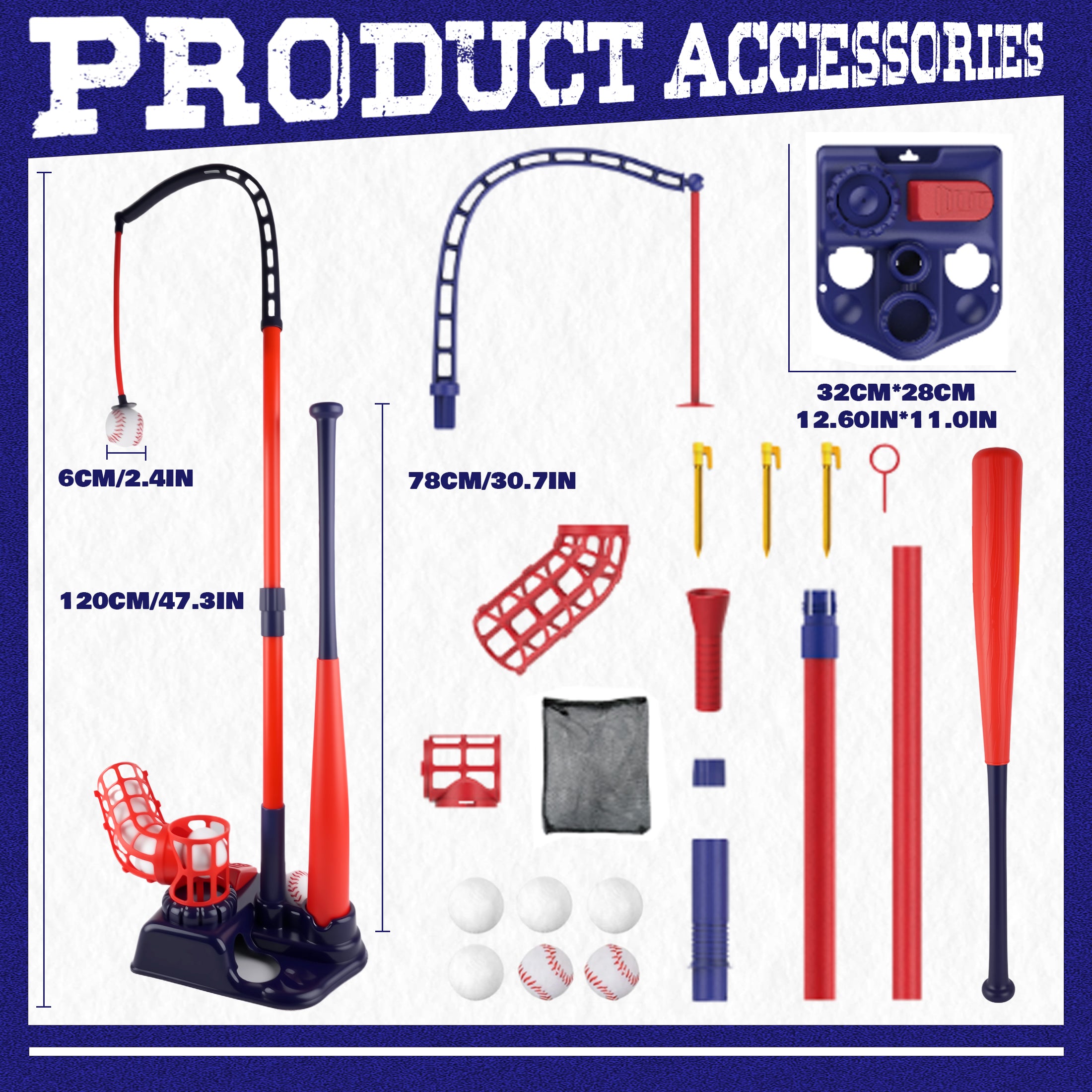 3-in-1 T Ball Set: The tee ball set includes a retractable bat, 3 ground stakes, 6 balls, a storage bag, and all necessary assembly accessories.The package also comes with installation instructions, so that you can install it quickly and correctly.
