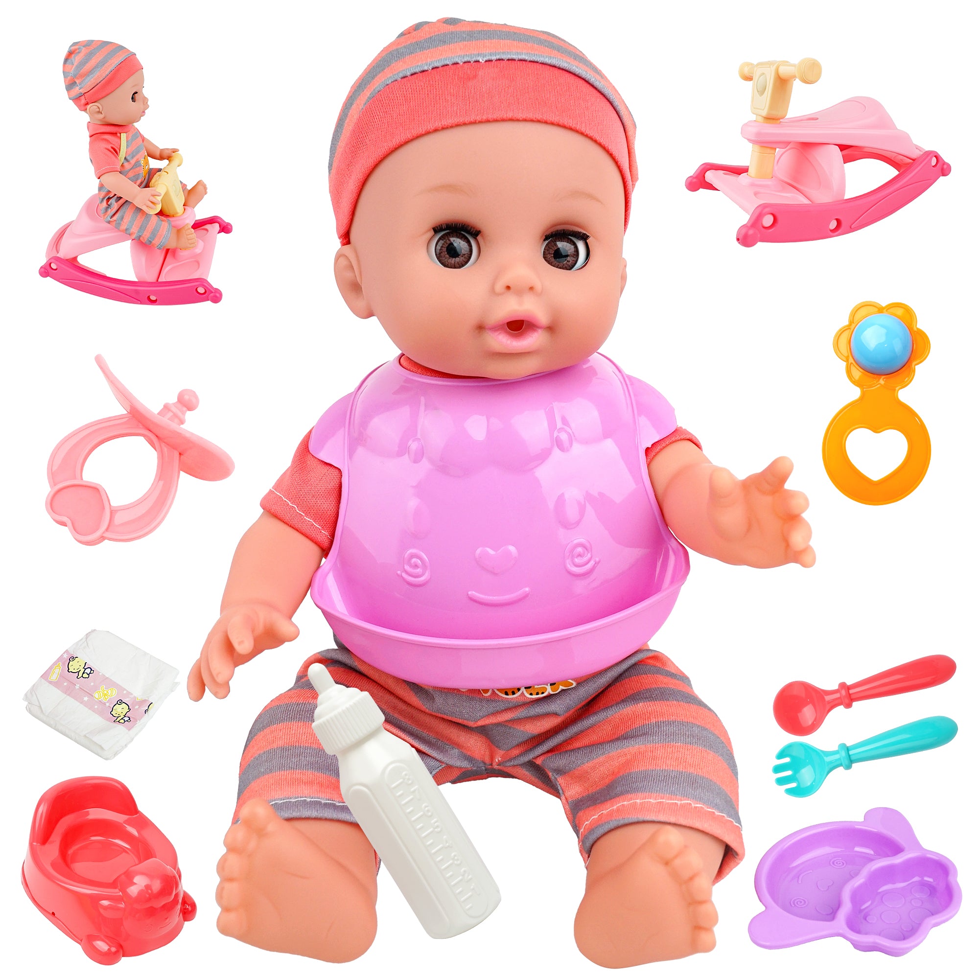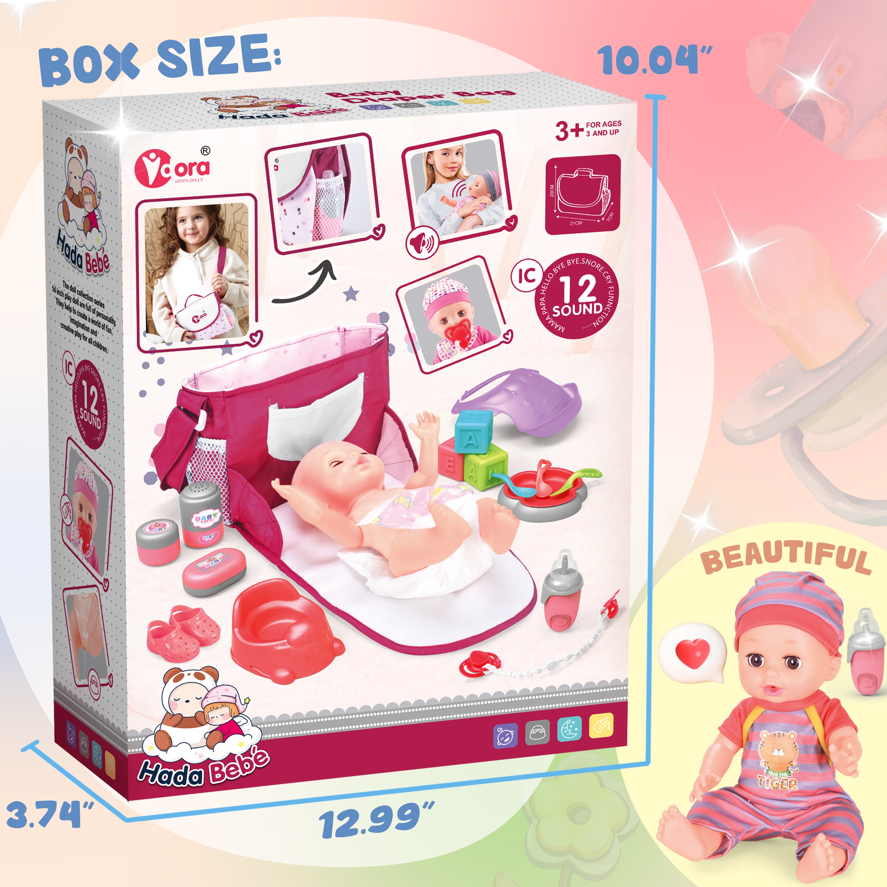 Your child can feed the doll with doll feeding accessories, wash the doll with baby toiletries, change the doll's diaper, play with the doll, change the doll's clothes, encourage the child to hug and nurture, and enhance the child's care and independence through real actions. The 14-inch doll is suitable for children to hold, hug and carry.