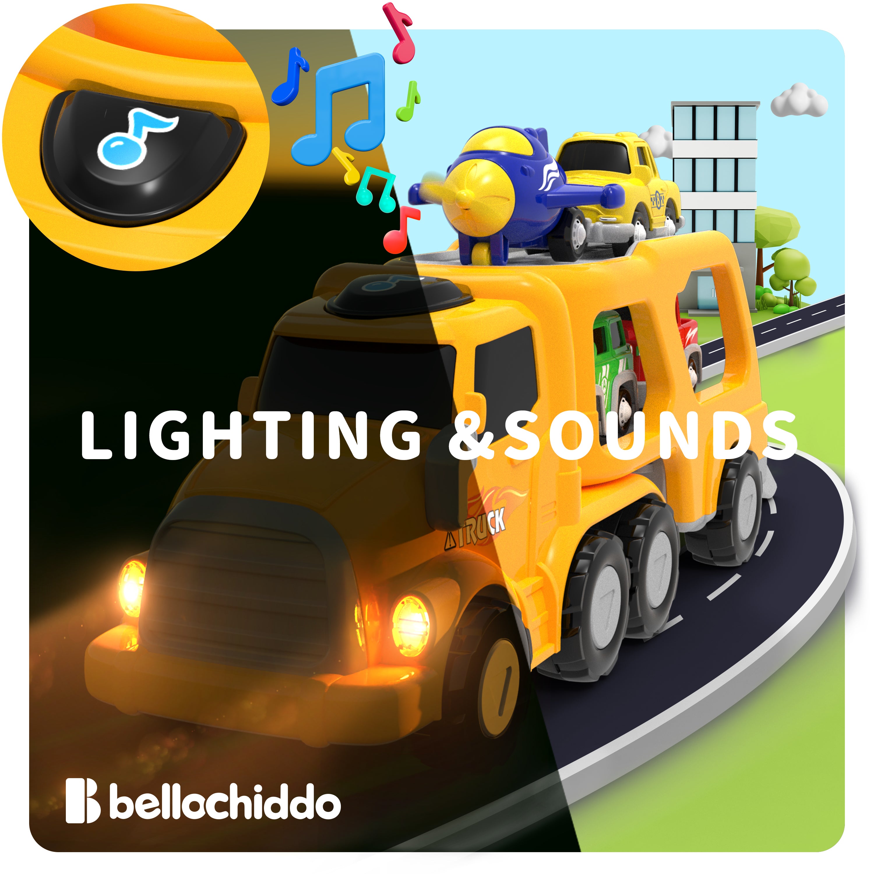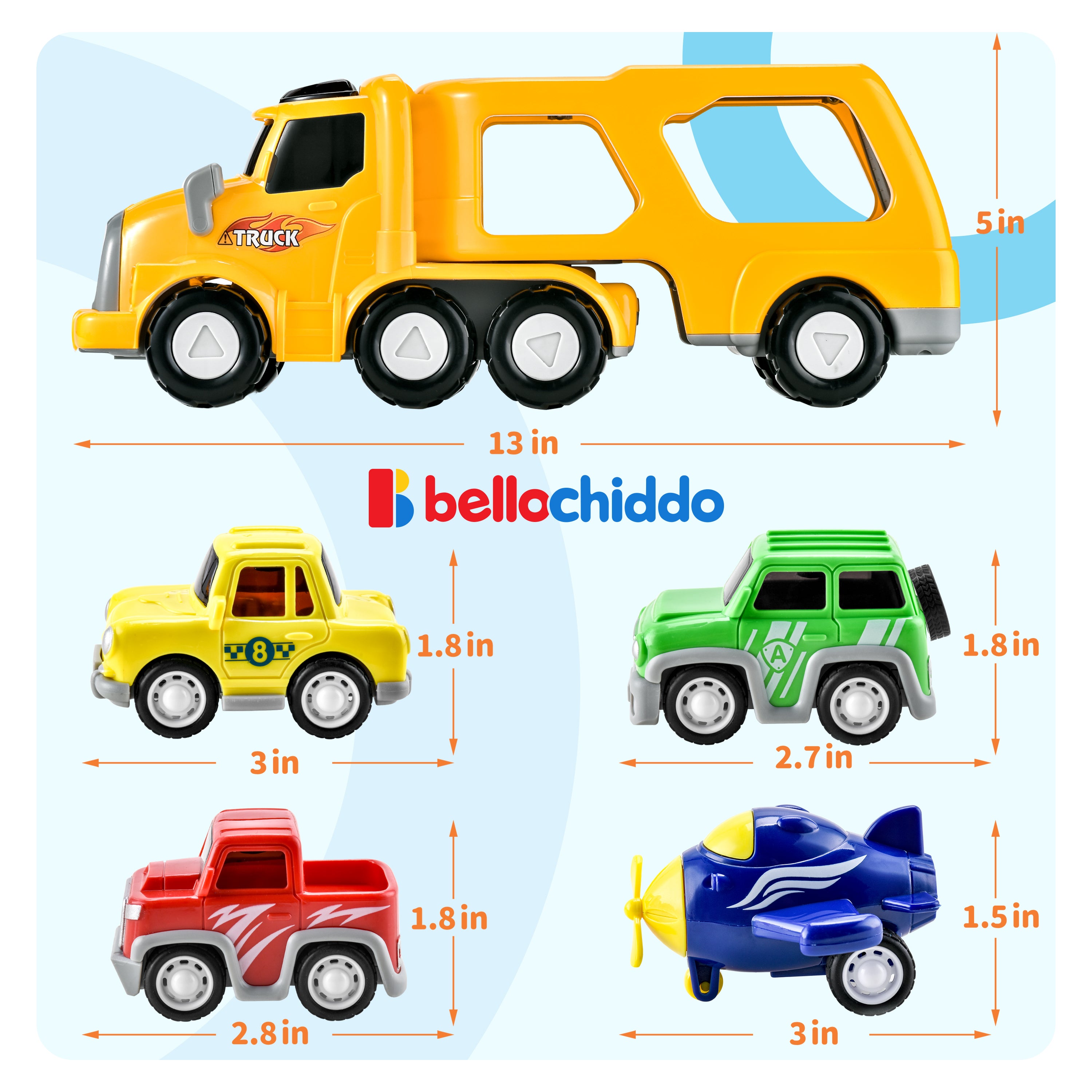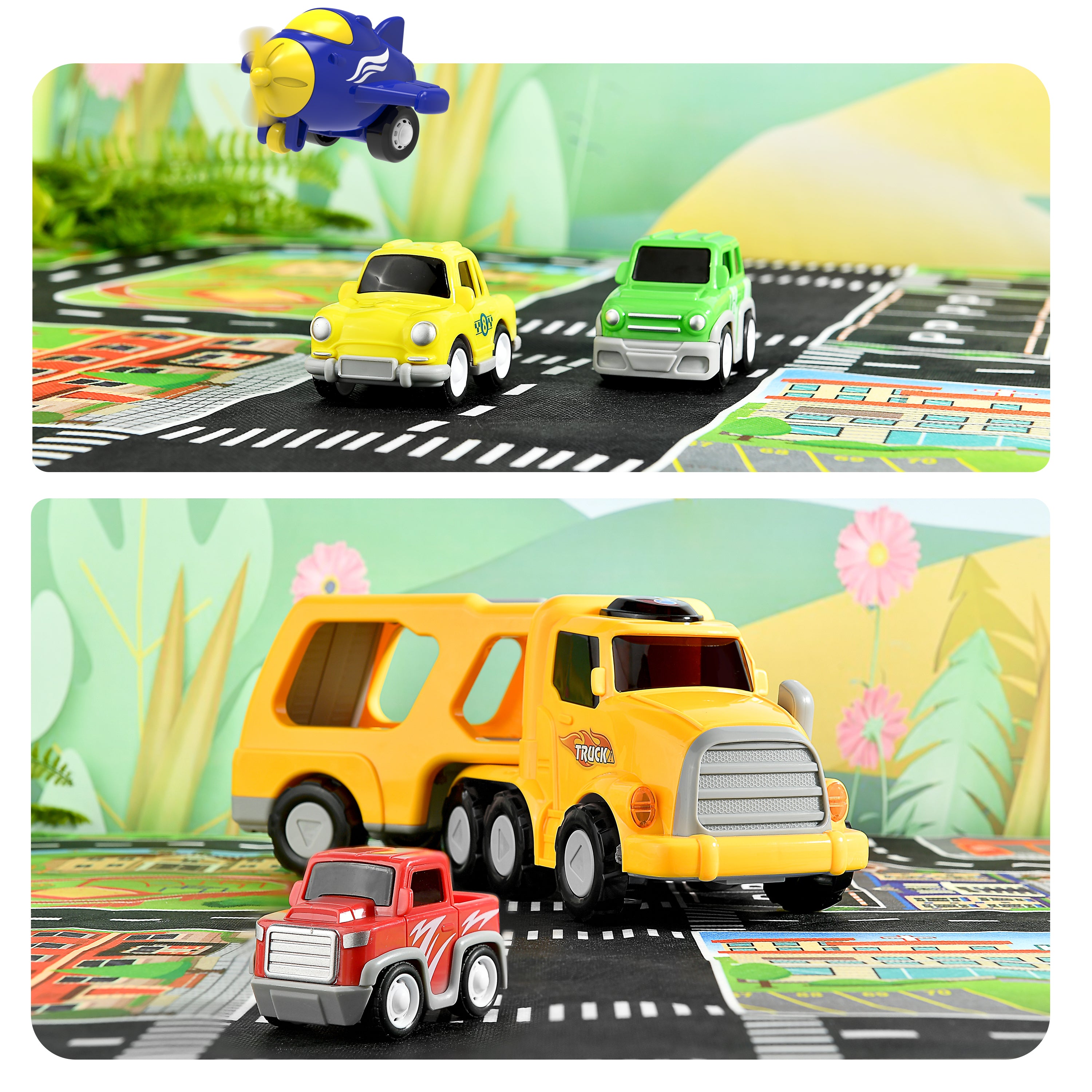 A charming, compact truck set with one minor drawback - the play mat is quite small. However, the trucks themselves are colorful and well-constructed. The large truck has lights/sounds, and all vehicles feature pull-back friction power. Extremely durable!