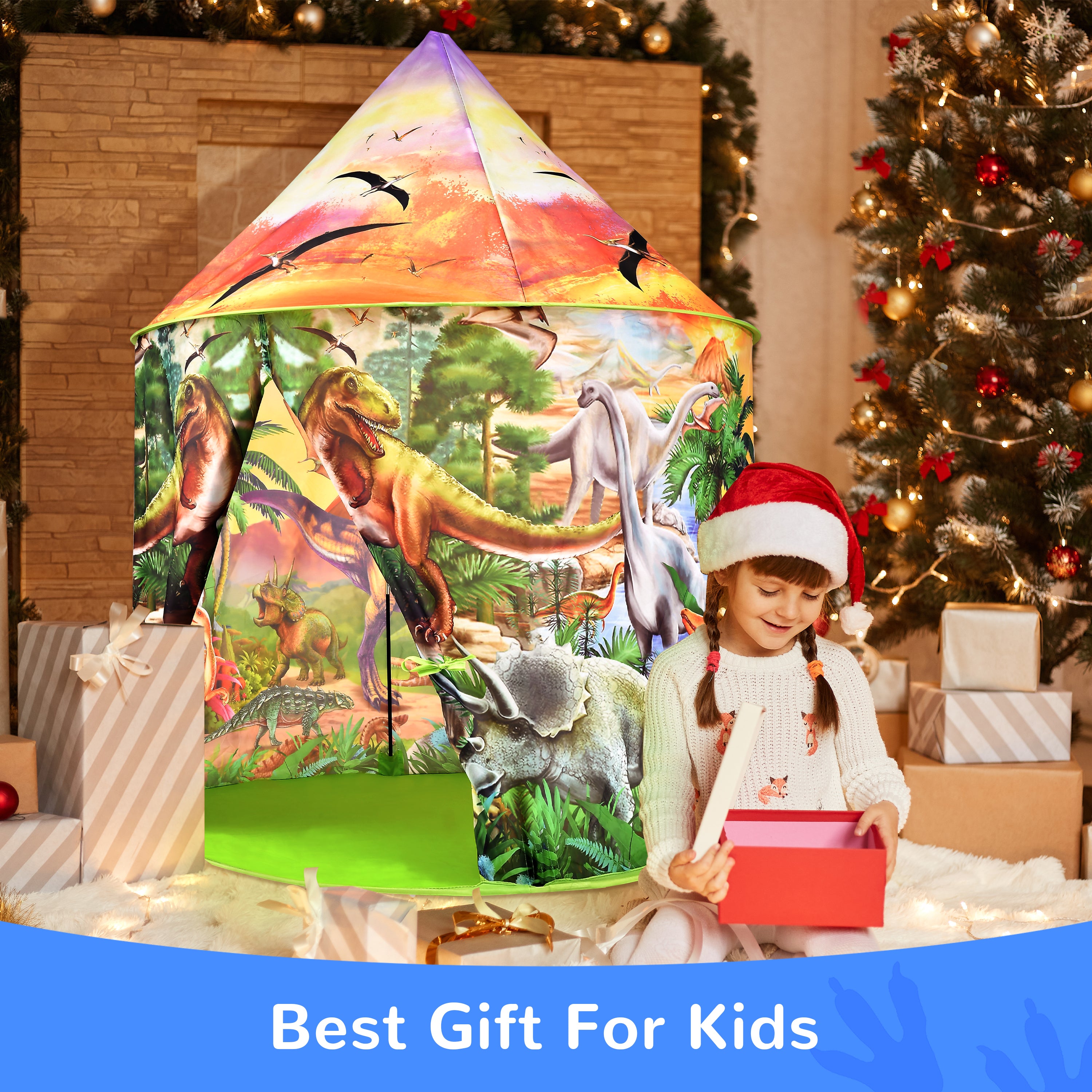 【Ideal Gifts for Children】 It's an ideal birthday gift, Christmas gift, or any occasion gift for kids! Our dinosaur tents are easy to install and can be carried around for family dinners, theme events, birthday parties, and more.