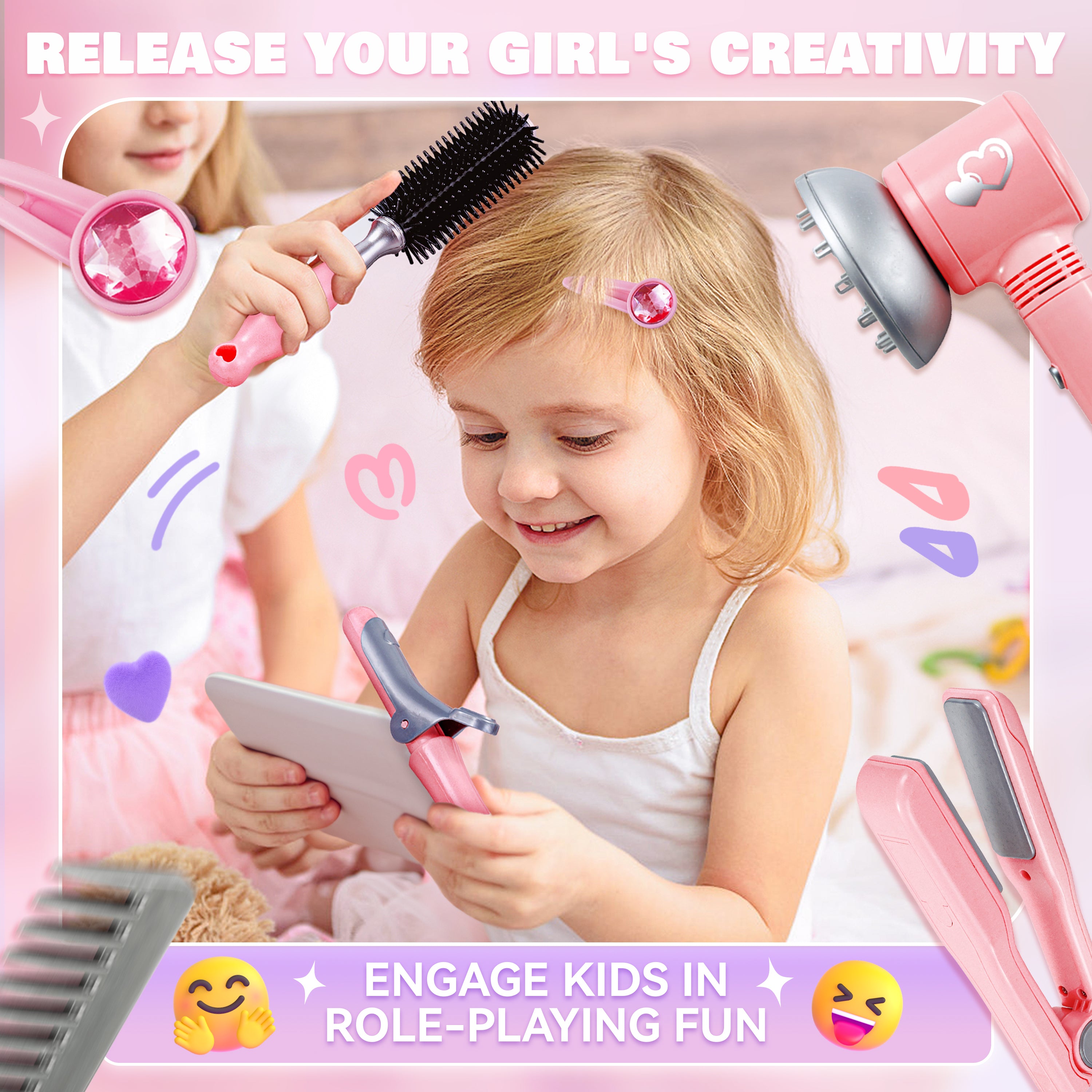 Skill - Building Pretend Play:Beyond fun, this set develops kids’ fine motor skills, hand - eye coordination, and social skills during role - play. Great for girls to express creativity and learn about hair styling playfully, matching pretend play and hair salon toys for girls educational value.