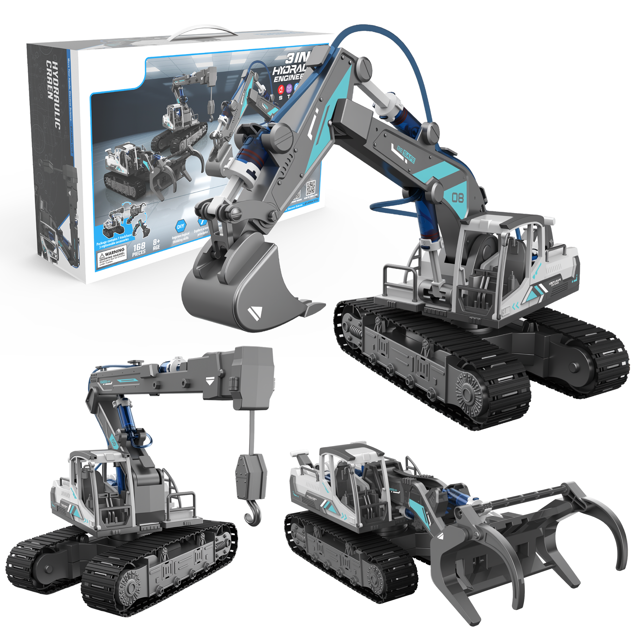 3-in-1 Truck Model Set: Multi-model building toy lets kids create a crane, excavator, or log loader—ideal for construction truck fans.