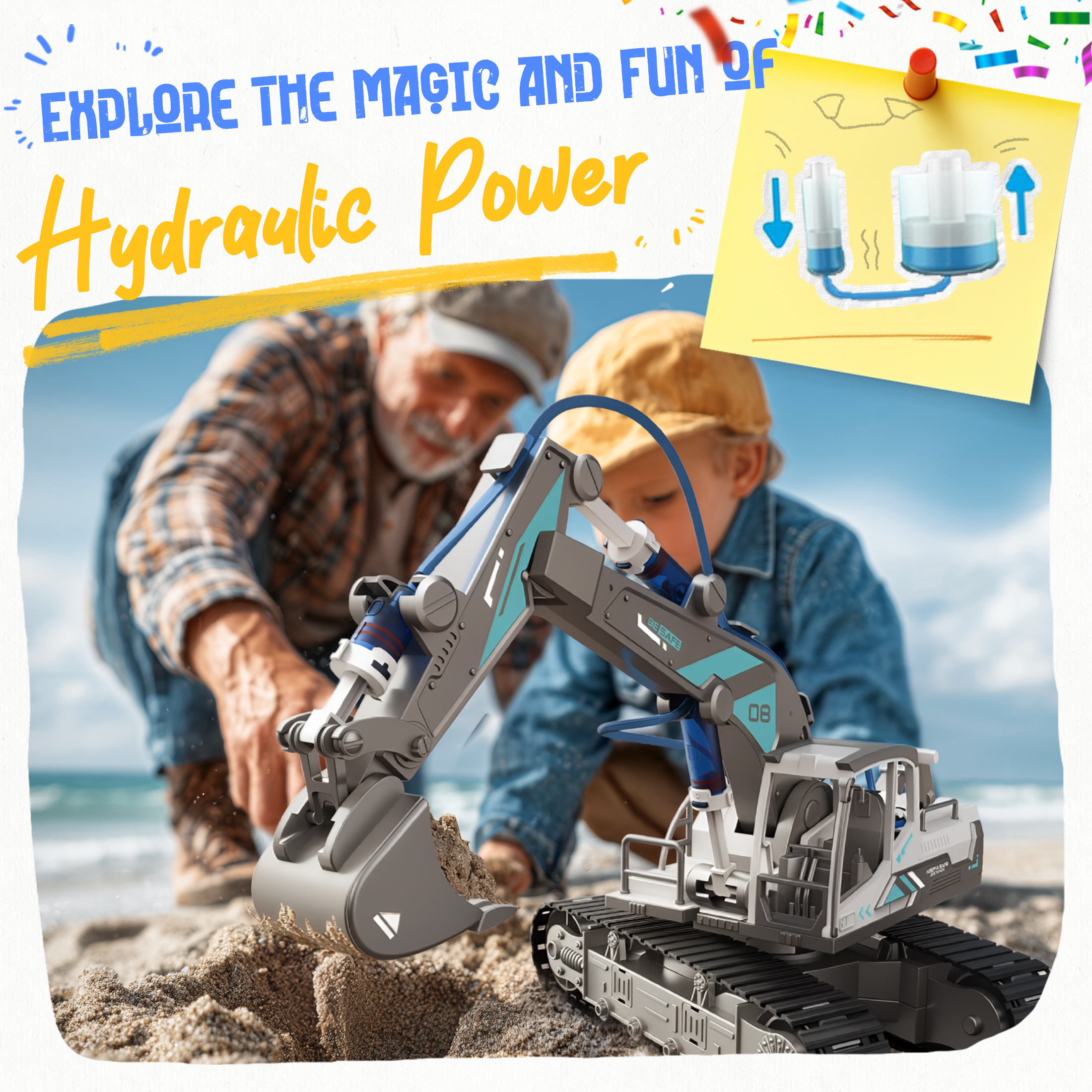 Working Hydraulic System for Real Movement: Features a manual hydraulic mechanism that powers the boom and arm, offering hands-on engineering play and realistic truck action.