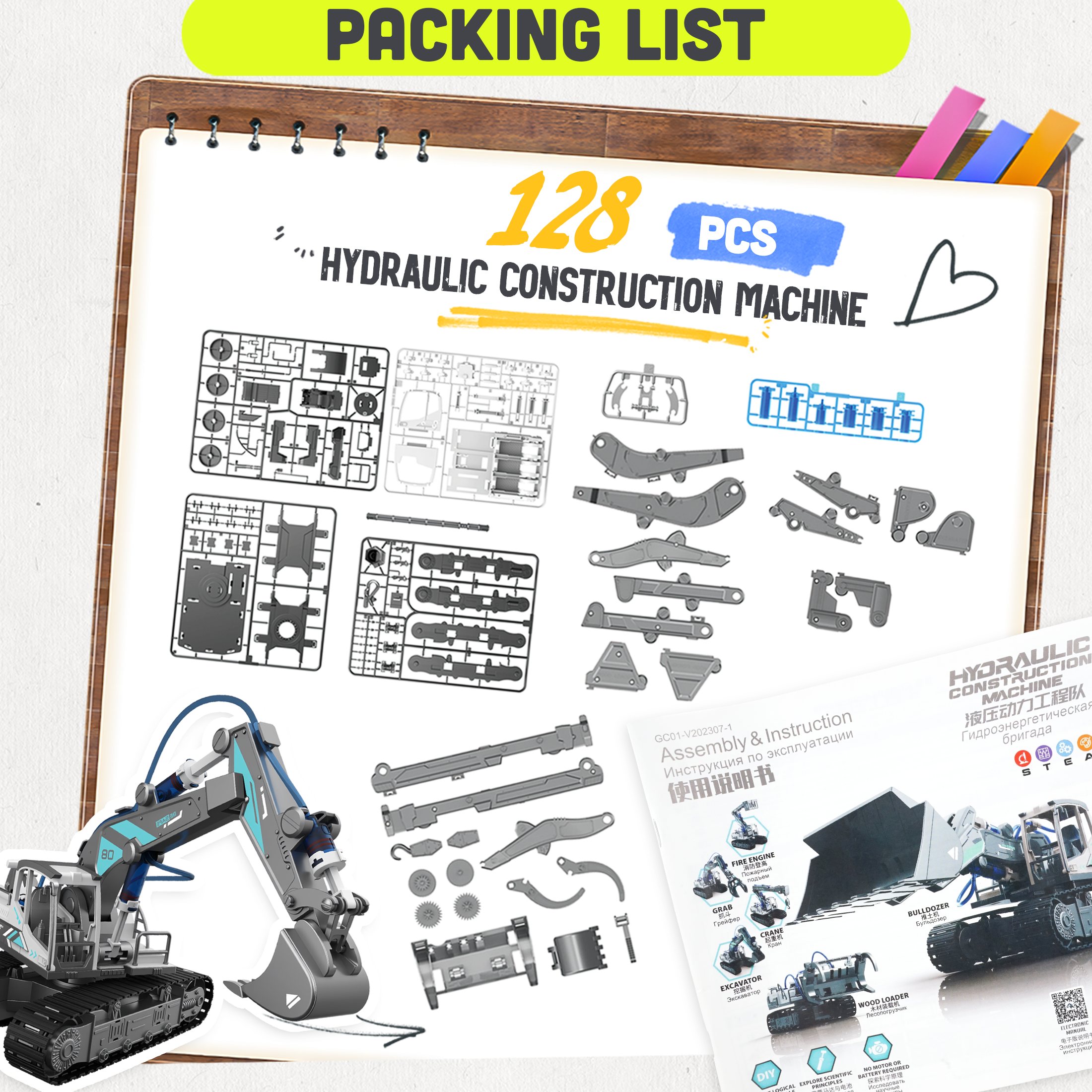 YCFUN STEM Construction Building Kit: Large engineering kit packed with 168 pieces for kids to build realistic construction trucks and help kids develop engineering thinking.