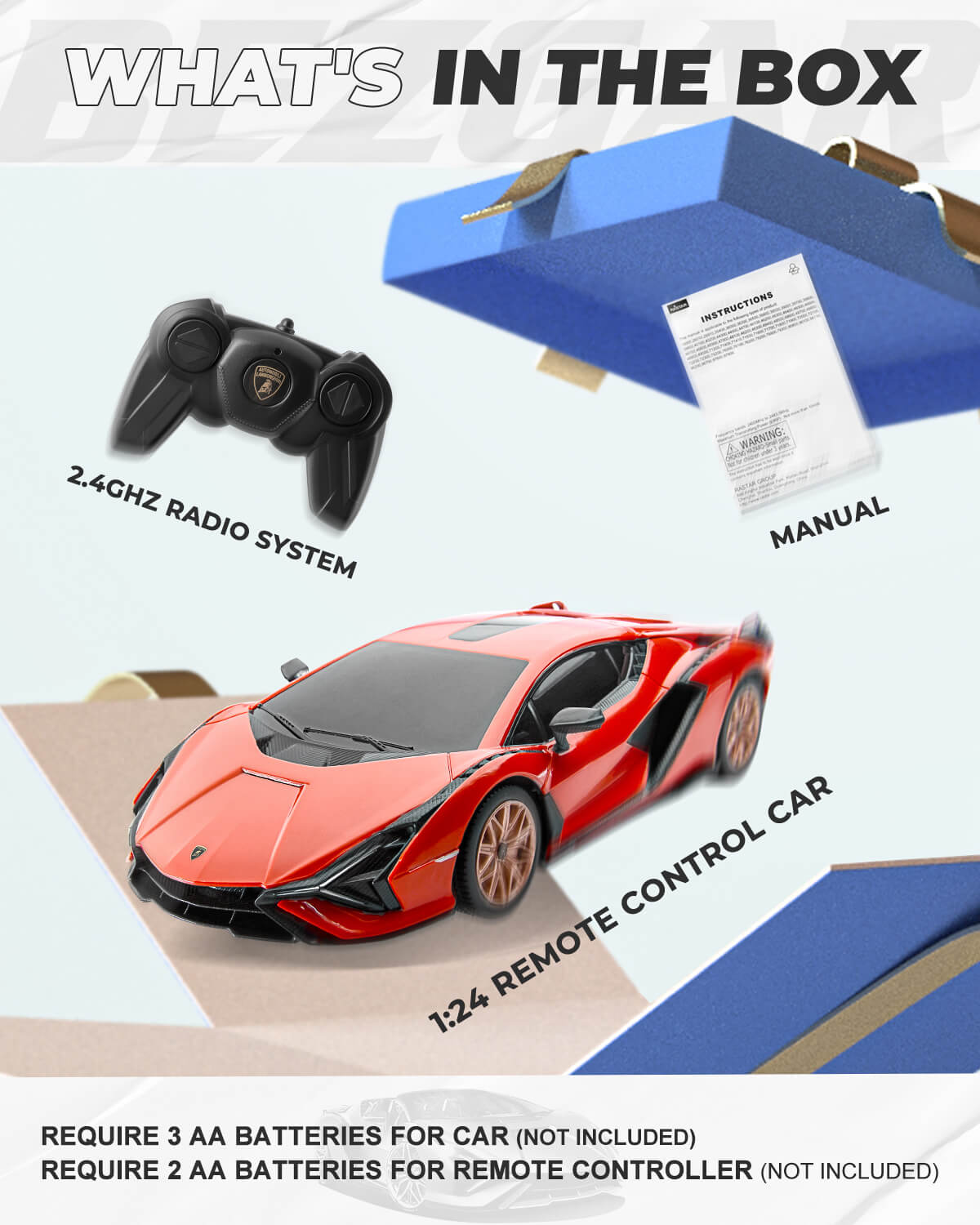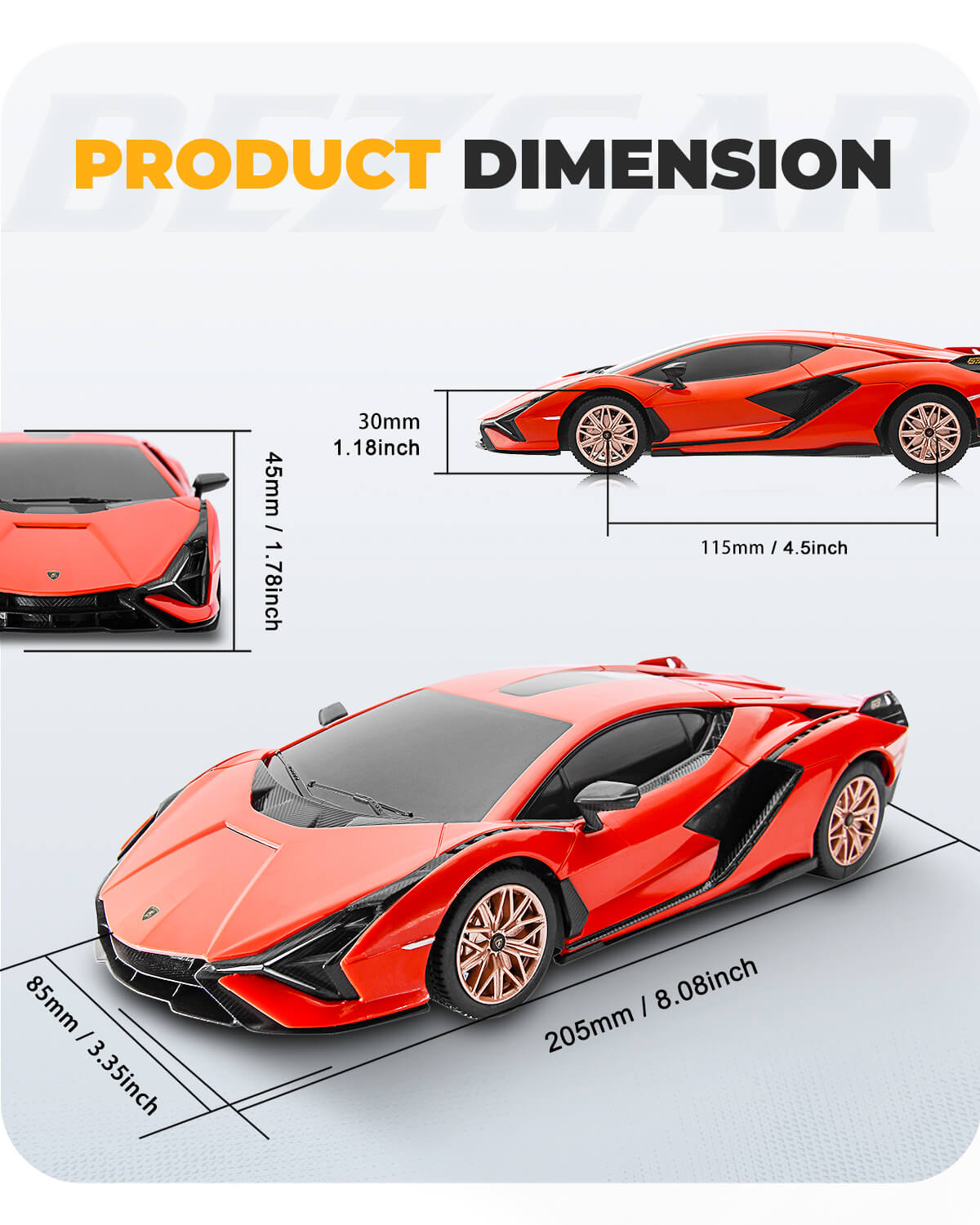 1/24 scaled back on the real Lambo Sián FKP 37; model Lambo measures in 7.3 x 3.6 x 1.9 inch; great size for inside use. We strongly stands behind each item it designs and sells. Each product we sell has passed a rigorous testing process before landing at your door. These remote control cars are wonderful gifts for kids.