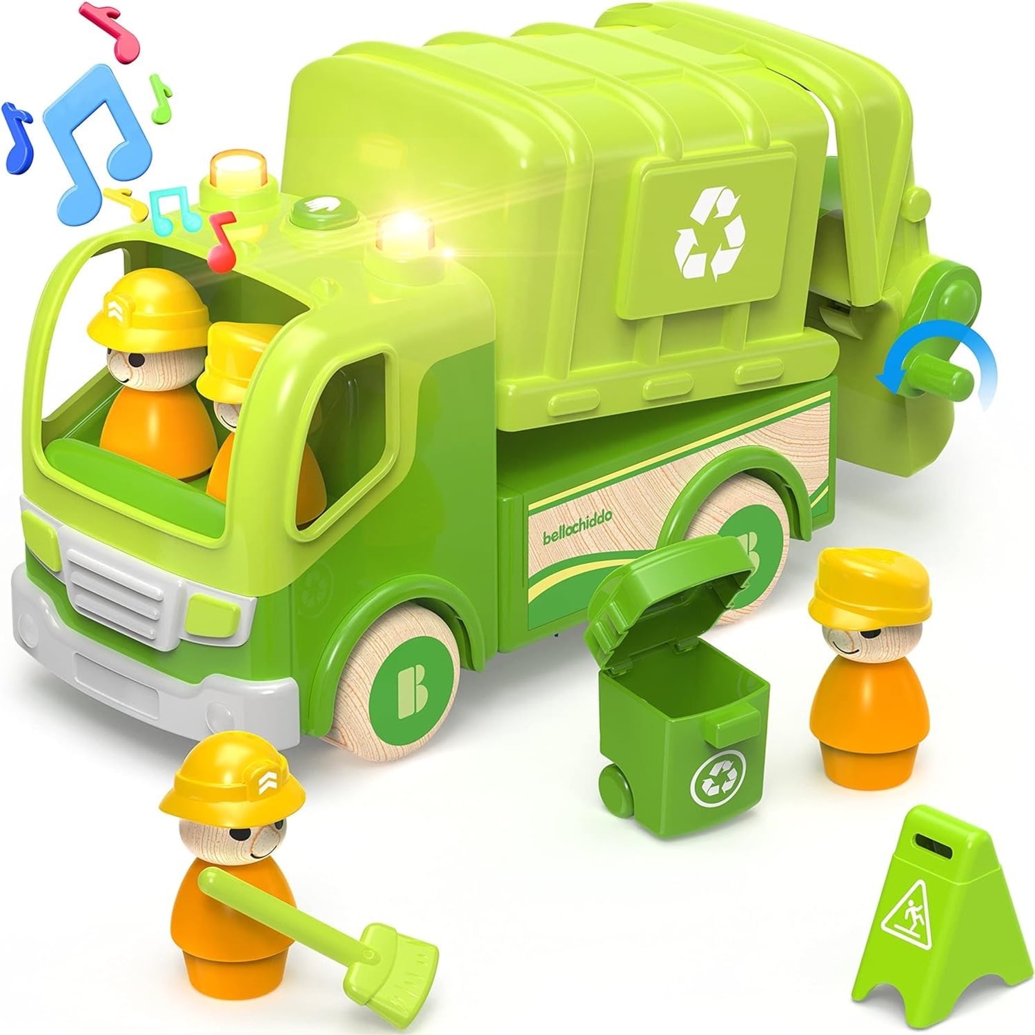 Realistic Sounds & Light Effects - The 3-layer wooden truck is equipped with bright lights and three sound effects. The sound changes every time you press the button again. It enables kids to play with wooden toddler toys with realistic sounds happily.