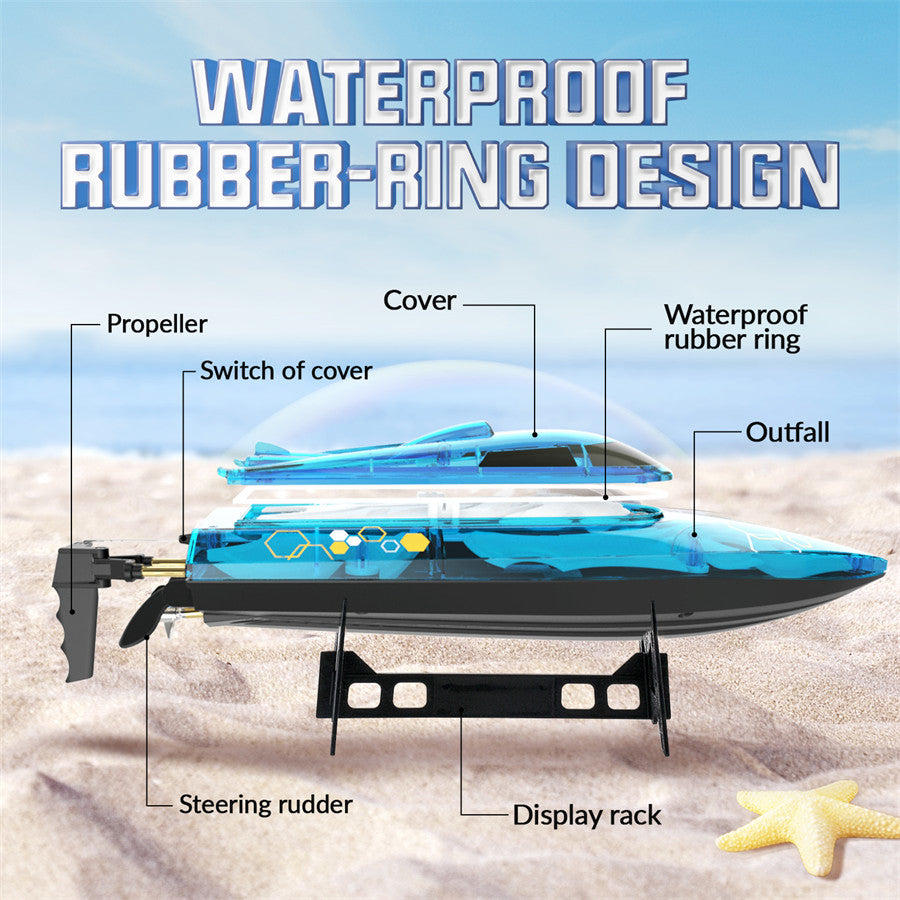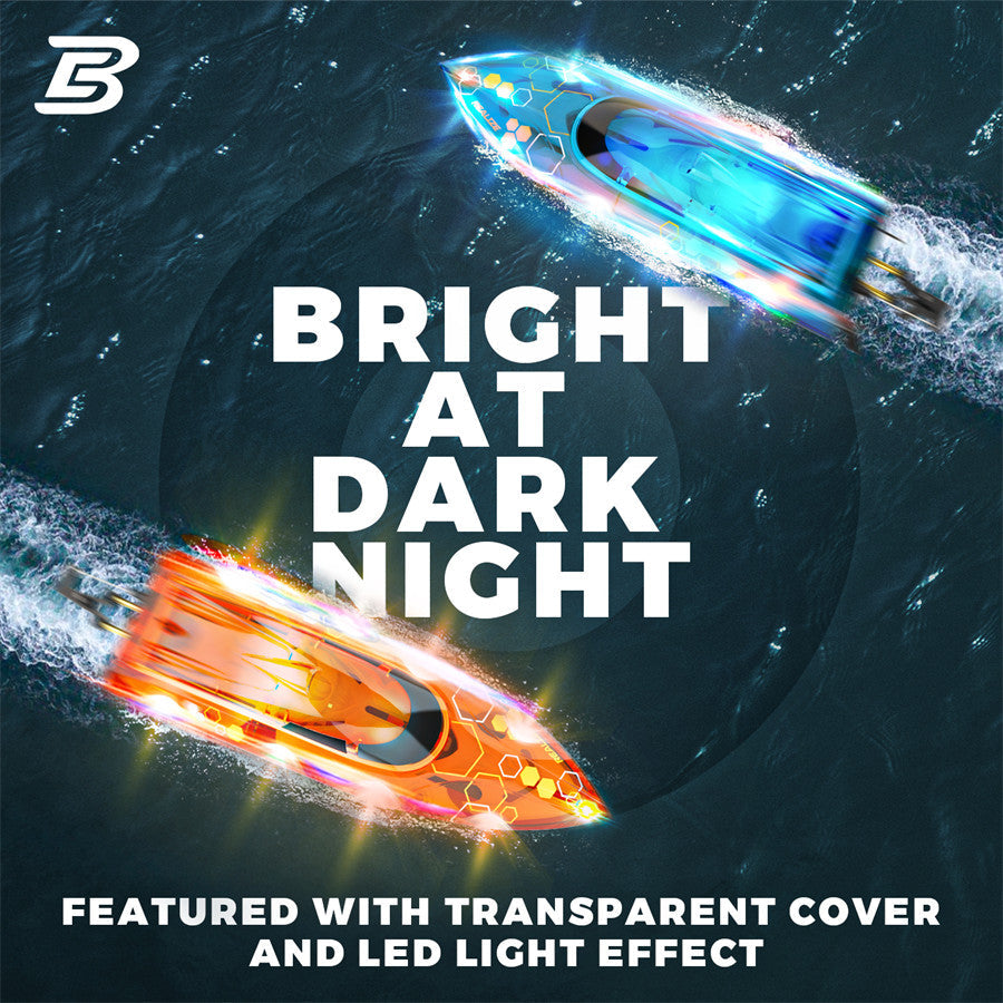 𝐅𝐀𝐁𝐔𝐋𝐎𝐔𝐒 𝐋𝐄𝐃 𝐋𝐈𝐆𝐇𝐓𝐈𝐍𝐆 𝐄𝐅𝐅𝐄𝐂𝐓: Differ from other boats, cover of this RC boats is transparent. Decorated with many LEDs underneath the cover to optimize the lighting effect, makes your boat more unique and attracting. With the sufficient lighting, you could identify the heading direction and have great fun to race at night.