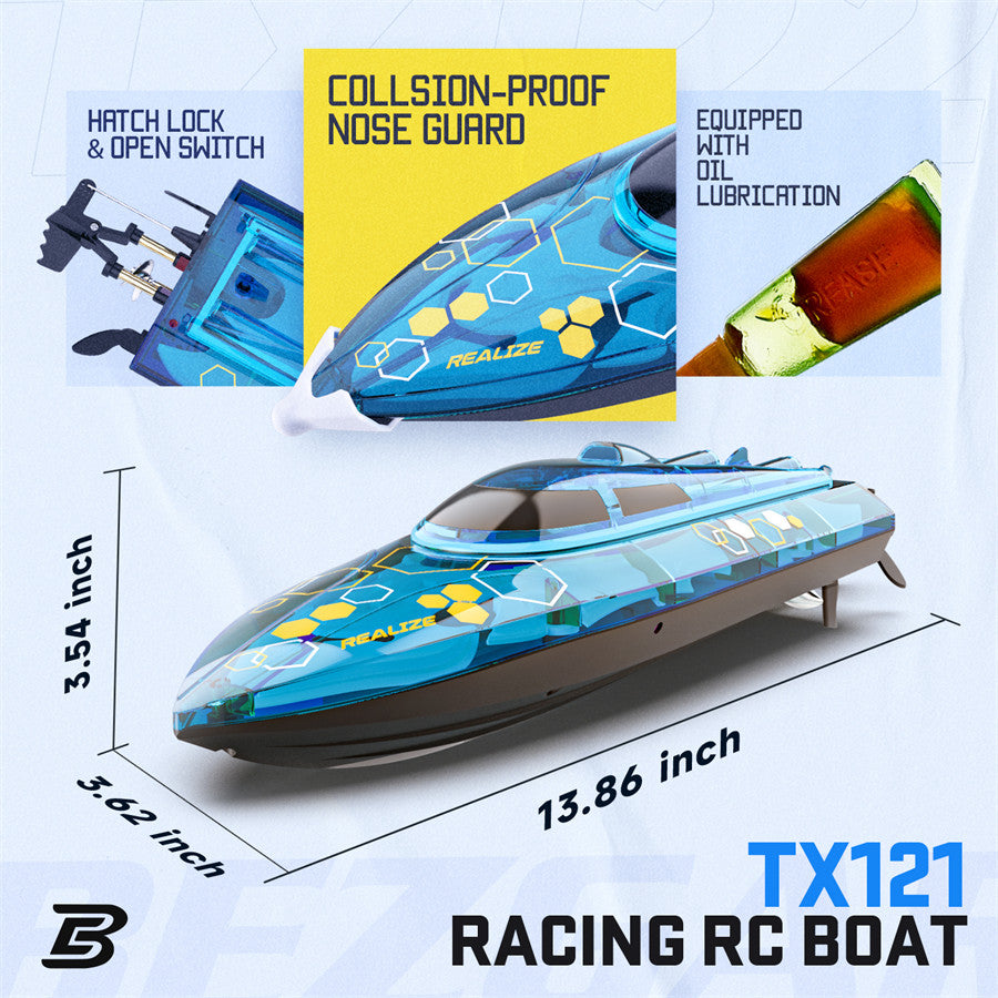 𝐁𝐄𝐙𝐆𝐀𝐑 𝐇𝐈𝐆𝐇-𝐒𝐏𝐄𝐄𝐃 𝐑𝐂 𝐁𝐎𝐀𝐓: This remote control boat with 180-degeree capsize recovery functions makes your boat fearless about the winds and waves no matter in the pool, lake or sea at a high speed of 20+MPH. More than that, the double-hatch and waterproof rubber ring design also ensures a more durable use.