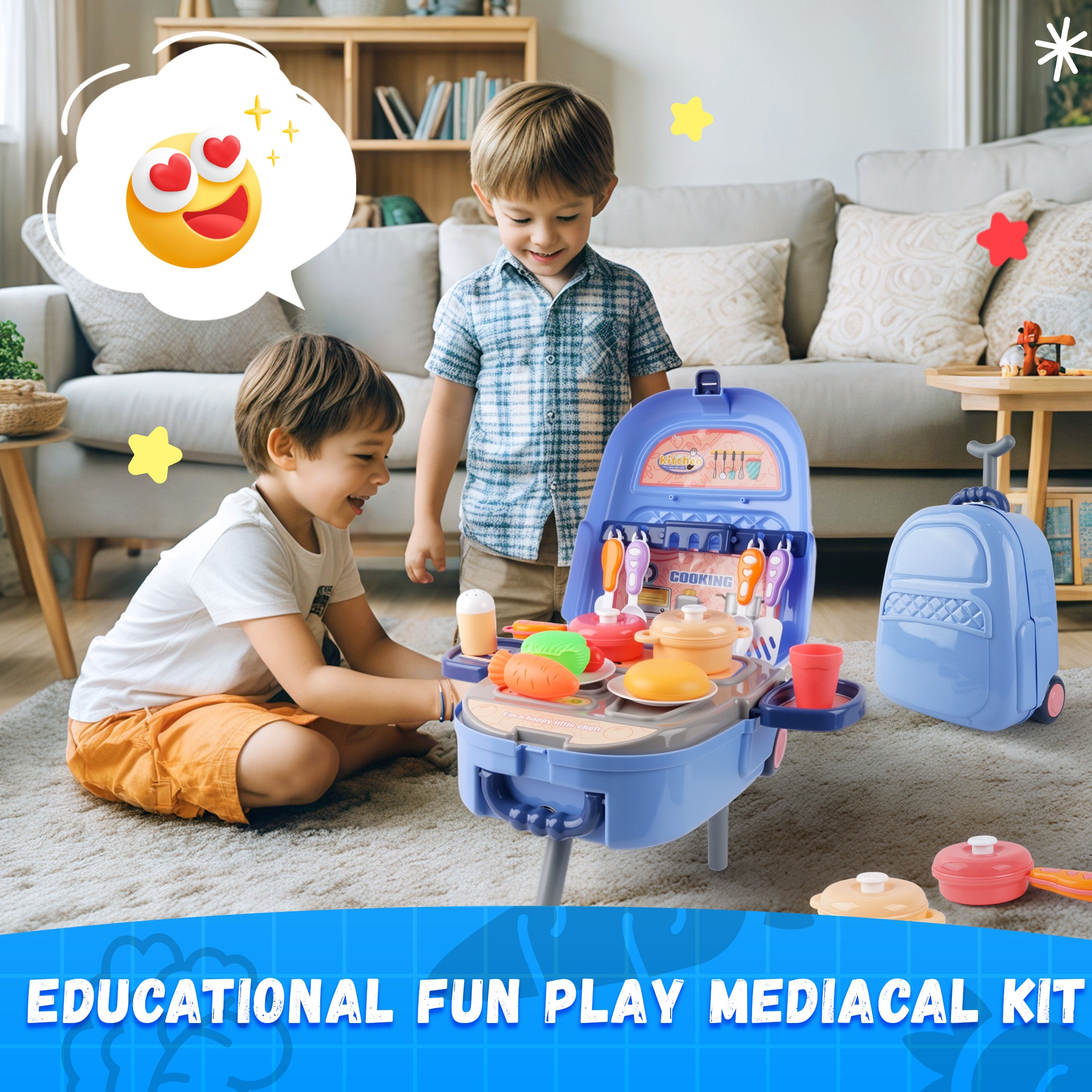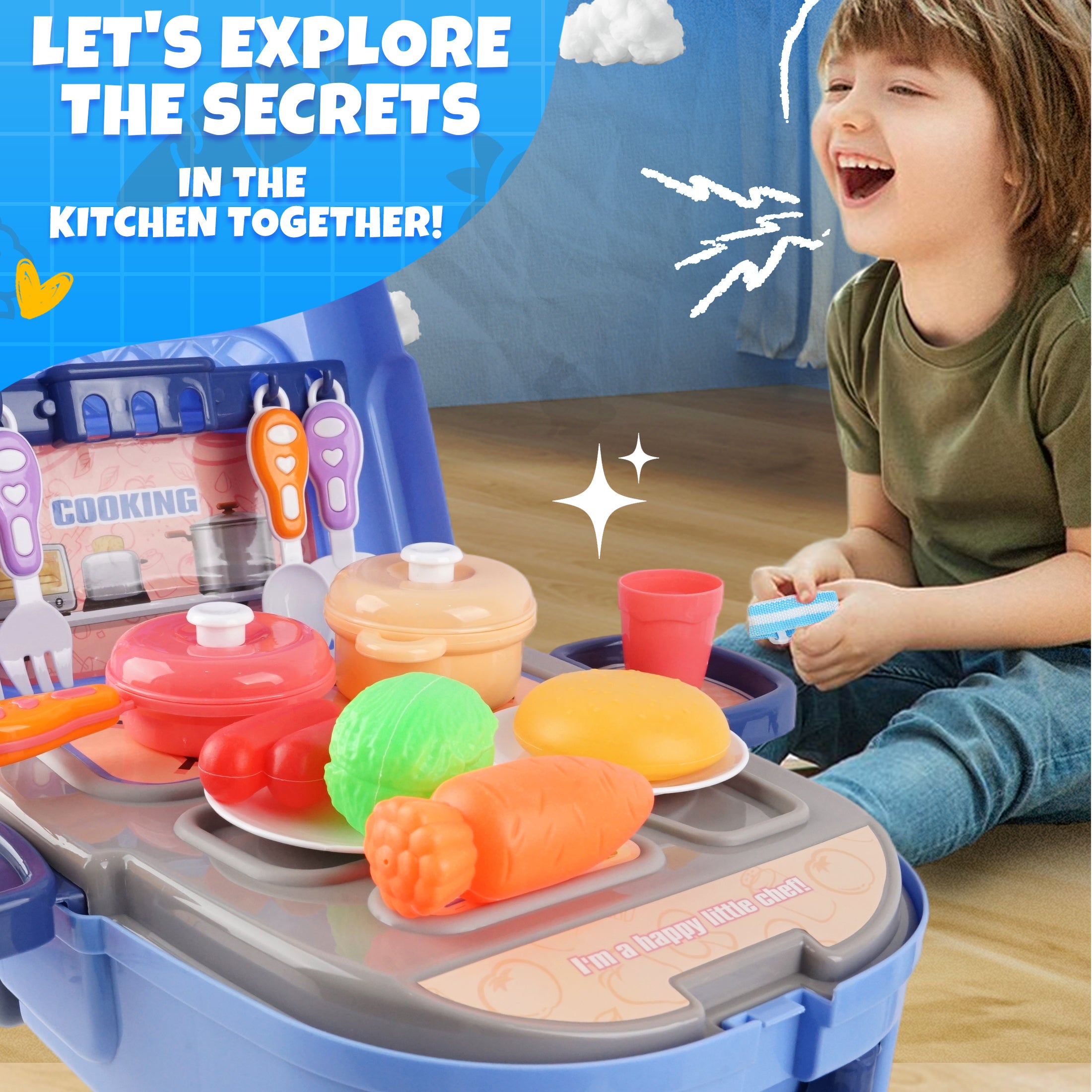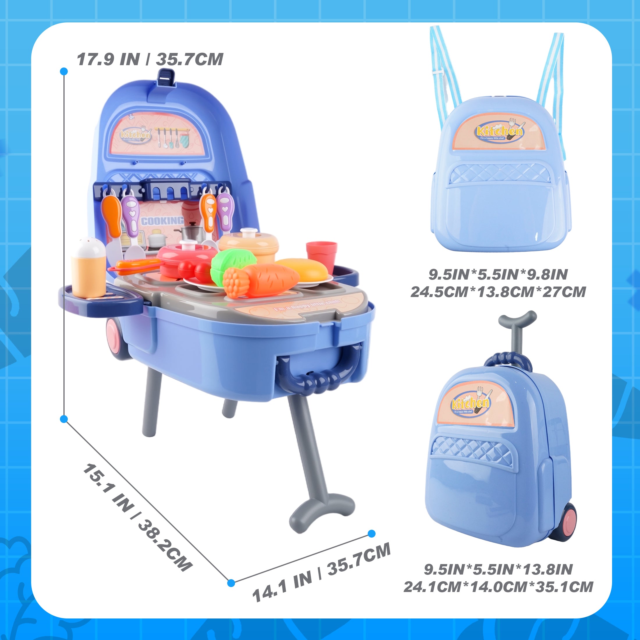🧑🍳3-in1 Play Kitchen Set-The YCFUN 3-in1 Play Kitchen Set can be switched between the kitchen workbench, handbag and backpack at will, so that your little chef can experience many different kinds of happiness in this kitchen toy.